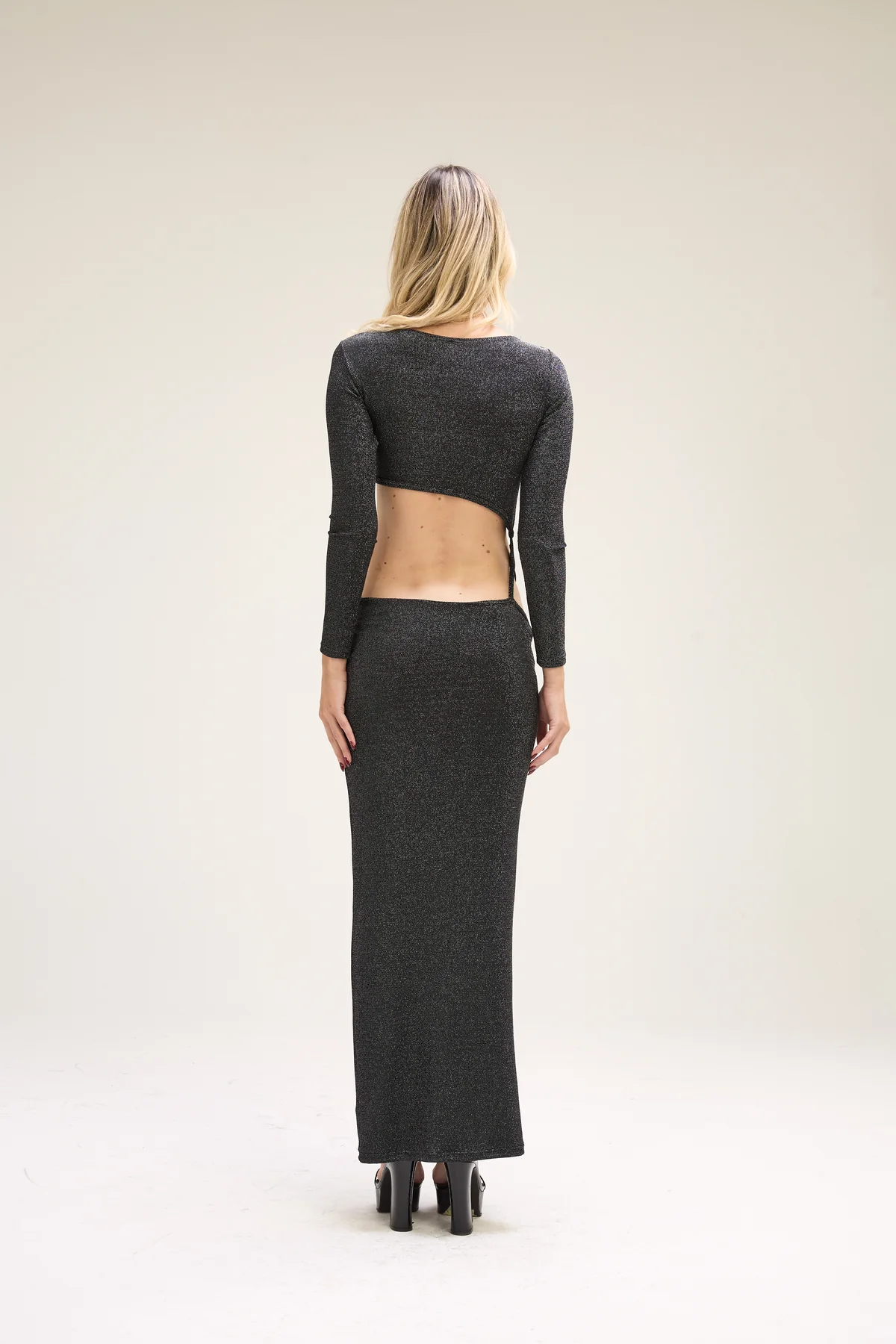 (costo de envío a convenir)Vestido largo de punto manga larga, con abertura.